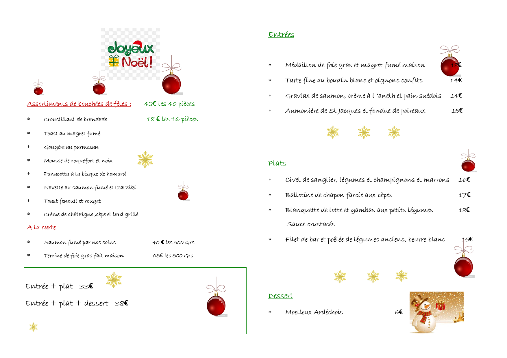Notre cuisine faite maison et française vous chouchoutera avec des recettes au goût authentique. Nous vous recommandons un vin. Vous aimerez aussi nos fromages plébiscités. Notre délicieux buffet vous propose une grande sélection de plats où tout le monde trouvera un plat qui lui plaira. C’est un excellent choix, particulièrement pour les groupes qui souhaitent éviter l’attente. Notre service traiteur est équipé pour accueillir les personnes à mobilité réduite. Chez nous, vous pouvez payer soit en espèces soit par tickets repas, Ticket Restaurant® ou chèque. Notre établissement est également disponible pour des fêtes privées. N’hésitez pas à nous contacter et nous vous trouverons une date convenable. Si vous désirez fêter votre mariage chez nous – contactez-nous et nous rendrons cette journée inoubliable. Le mercredi est notre jour de repos. Tous les autres jours, nous serions heureux de vous servir.